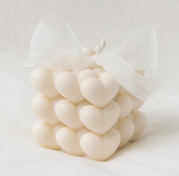 La bougie Amoria incarne la douceur et lâamour sous toutes ses formes. ComposĂ©e de petits cĆurs sculptĂ©s et dĂ©licatement rassemblĂ©s en un cube harmonieux, elle est parfaite pour illuminer vos moments prĂ©cieux : dĂ©claration, anniversaire, mariage, ou simplement pour dire âje pense Ă toiâ.
