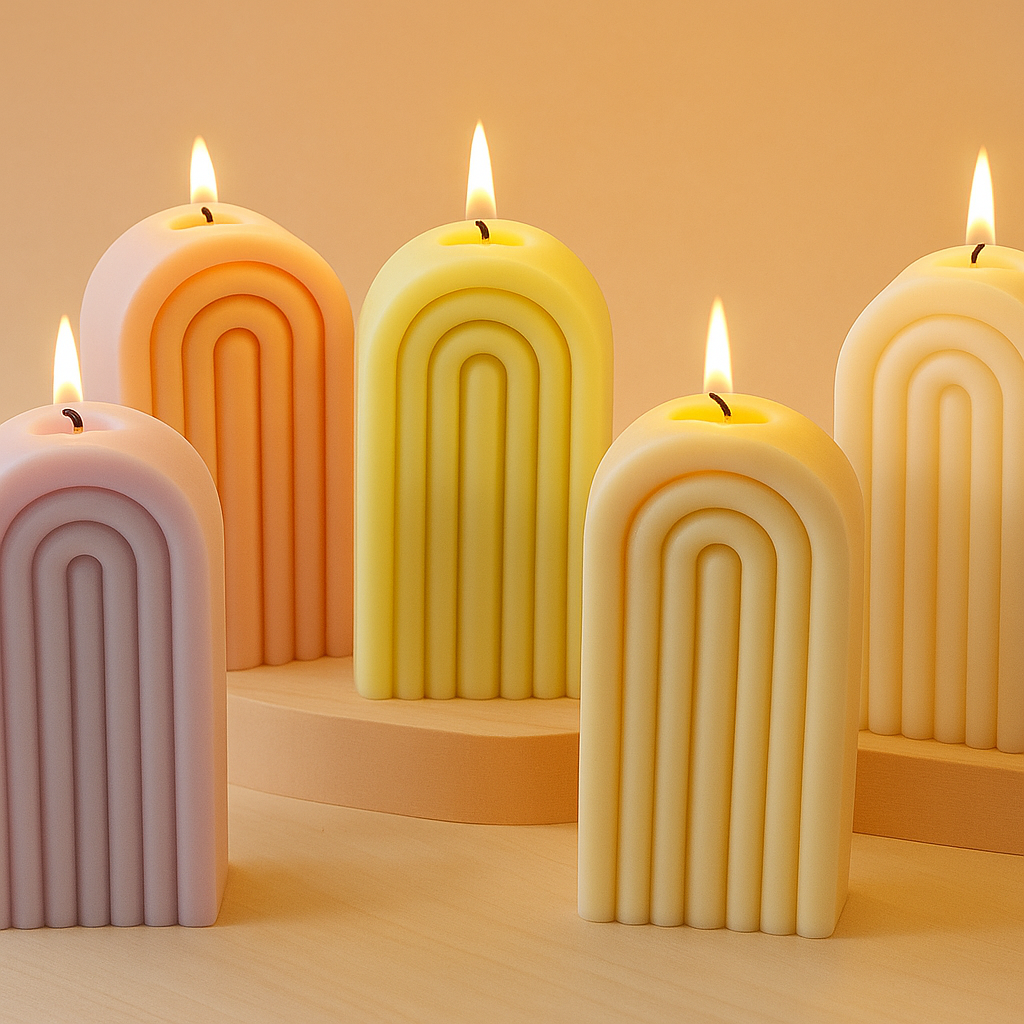 La bougie Arcina est la petite sĆur dâArcana. Avec sa forme arquĂ©e en version plus compacte, elle allie minimalisme et chaleur visuelle. Son design moderne et sa taille pratique en font un parfait accent dĂ©coratif sur une table, une Ă©tagĂšre ou en duo avec d'autres bougies.